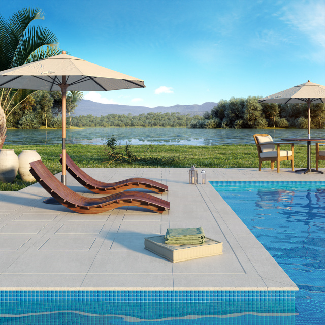 Outra ideia, essa essencial para a segurança dos seus convidados, é optar por produtos que tenham ação antiderrapante. Os revestimentos cimentícios, nesse aspecto, são ótimas escolhas.